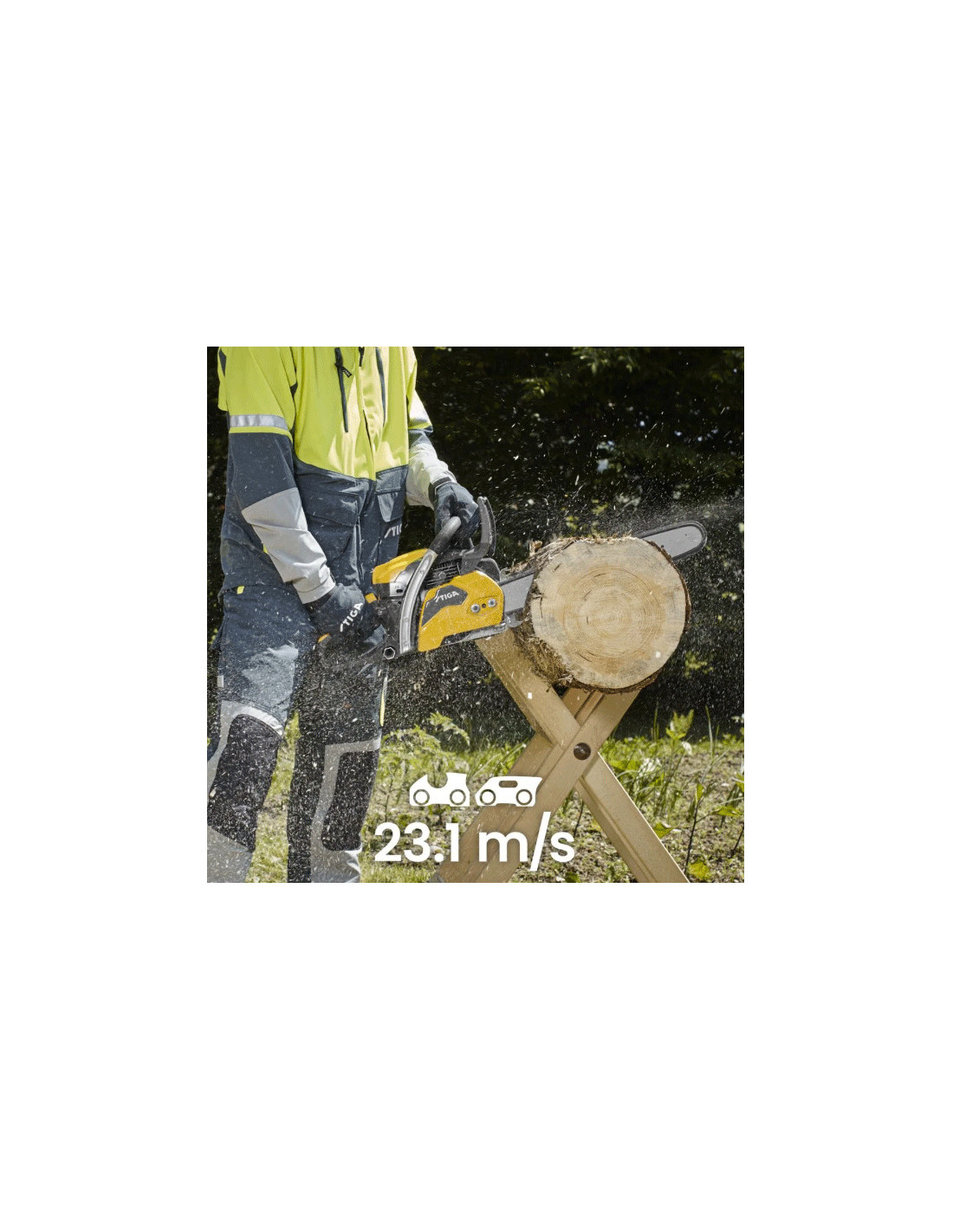 Kedjehastighet på 23,1 m/s